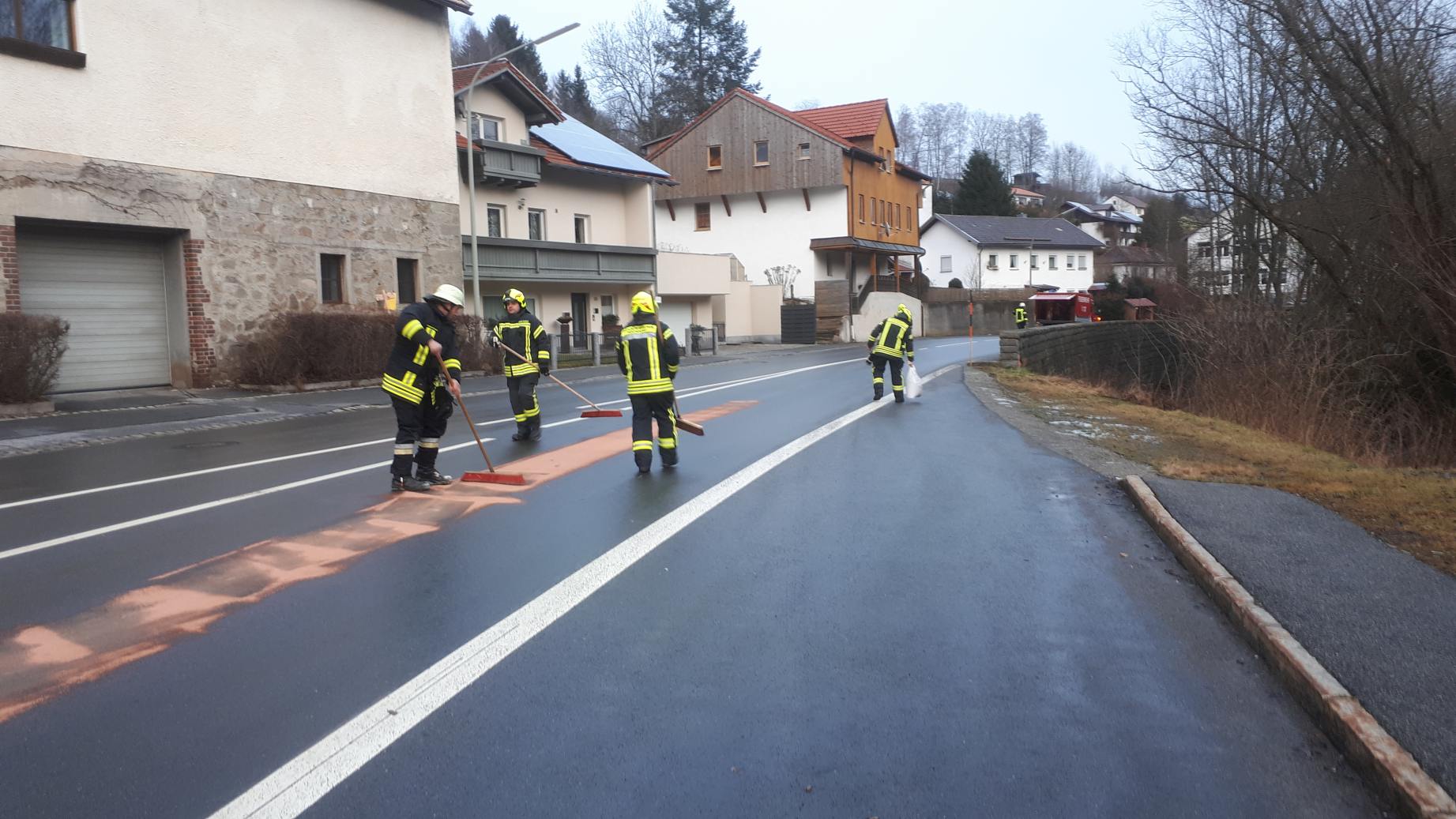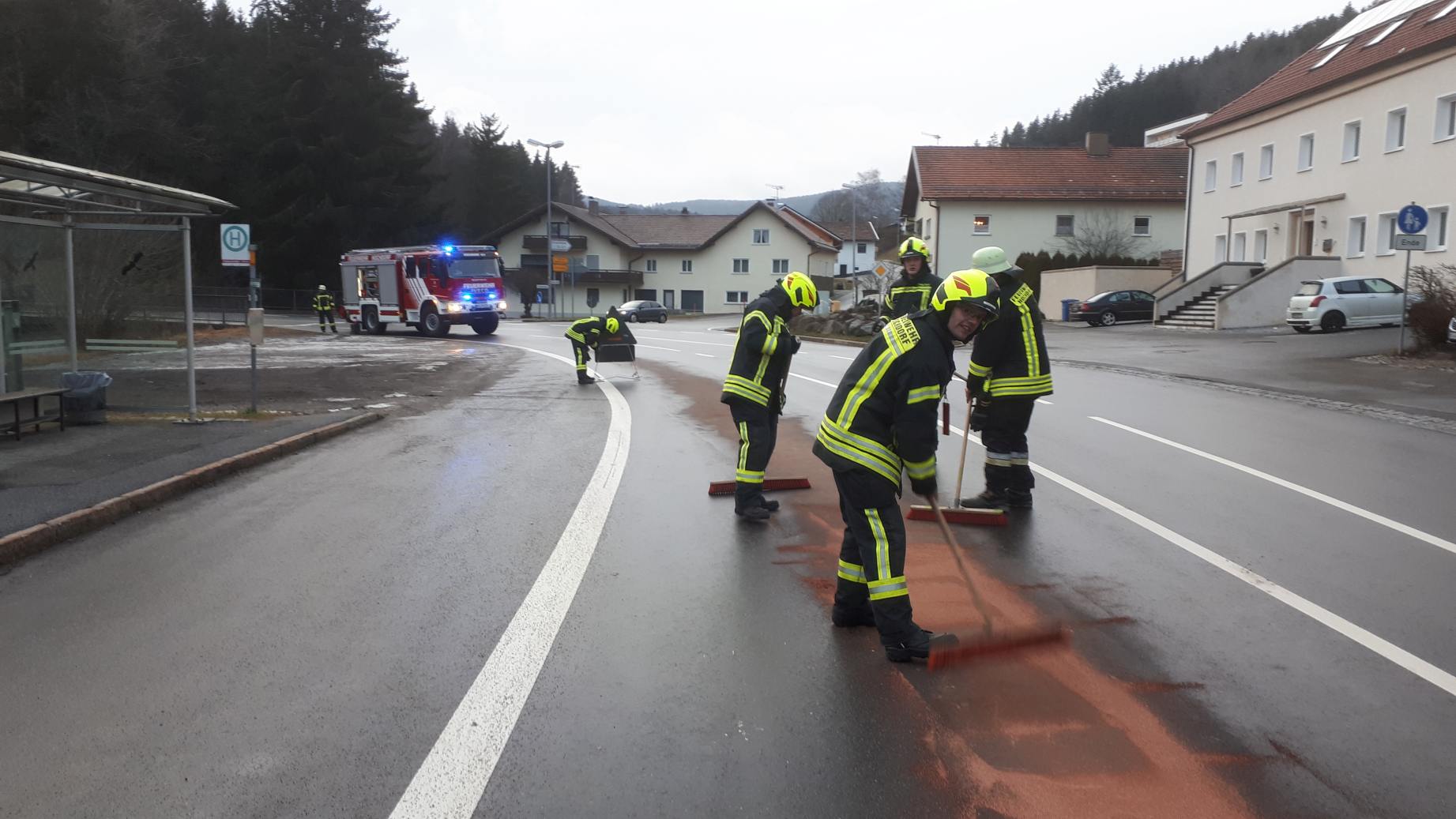 Hochbruck. Eine aufmerksame Anwohnerin teilte der Feuerwehr Hochdorf eine Ölspur auf der Kreisstraße REG 1 in Hochbruck mit. Nach der Erkundung der Länge der Fahrbahnverunreinigung alarmierte die ILS Straubing die Feuerwehr Hochdorf zum Straße reinigen. Die Ölspur wurde mit Bindemittel abgestreut. Zur Warnung der Verkehrsteilnehmer wurden Ölspurschilder aufgestellt. Die Feuerwehr regelte während des Einsatzes auch den Verkehr zwischen Hochbruck und Wolfersbach. Nach einer knappen Stunde konnte der Einsatz beendet werden.