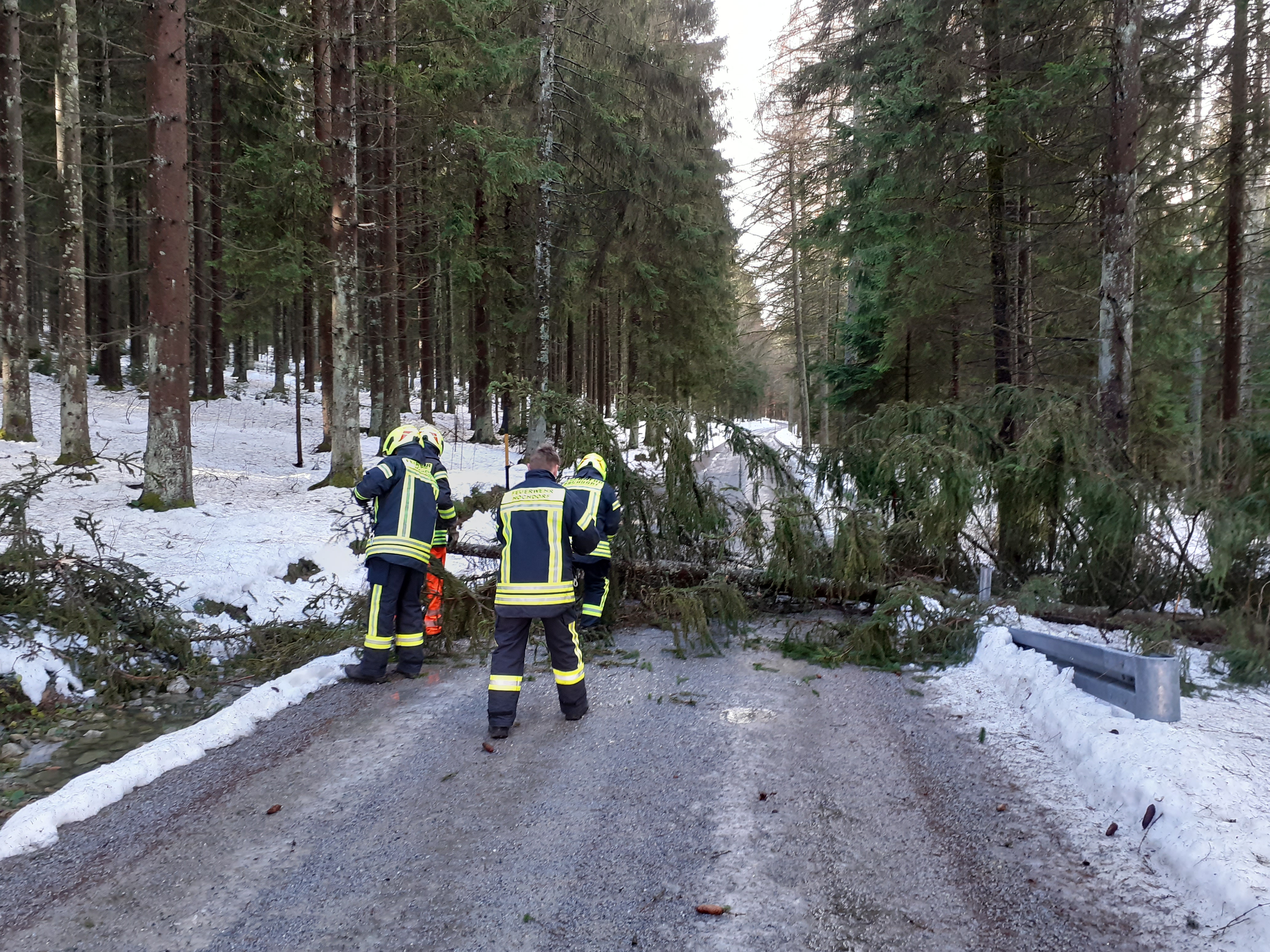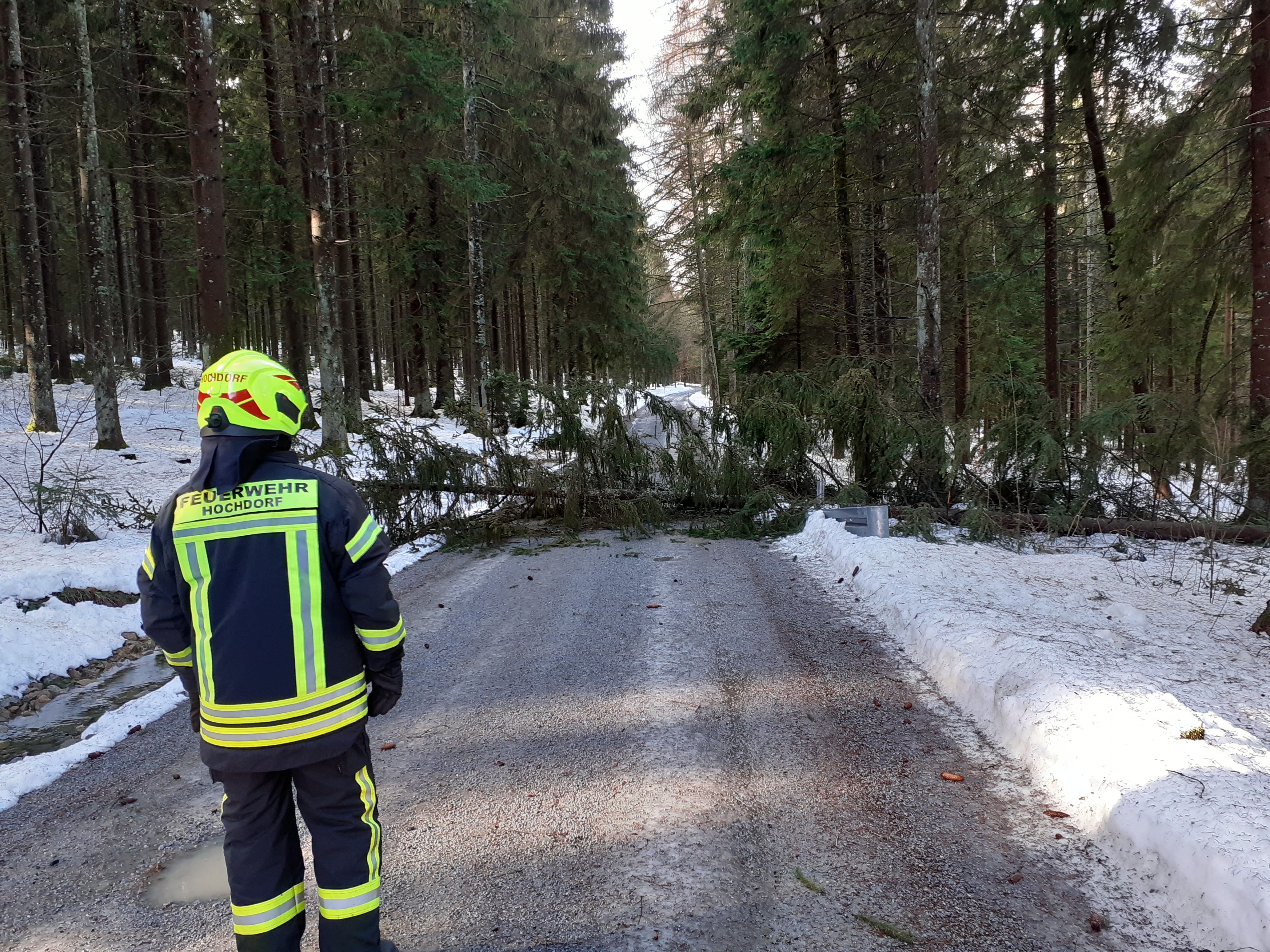 Dürrwies: Beschäftigte des Historischen Waldferiendorfes Dürrwies informierten die Feuerwehr Hochdorf über einen umgestürzten Baum zwischen Seiboldsried und Dürrwies und baten um Unterstützung. Die FFw Hochdorf fuhr mit dem LF 20 und 9 Kameraden nach Dürrwies und entfernten den Baum von der Straße. Nach einer halben Stunde konnte auch dieser Einsatz beendet werden.