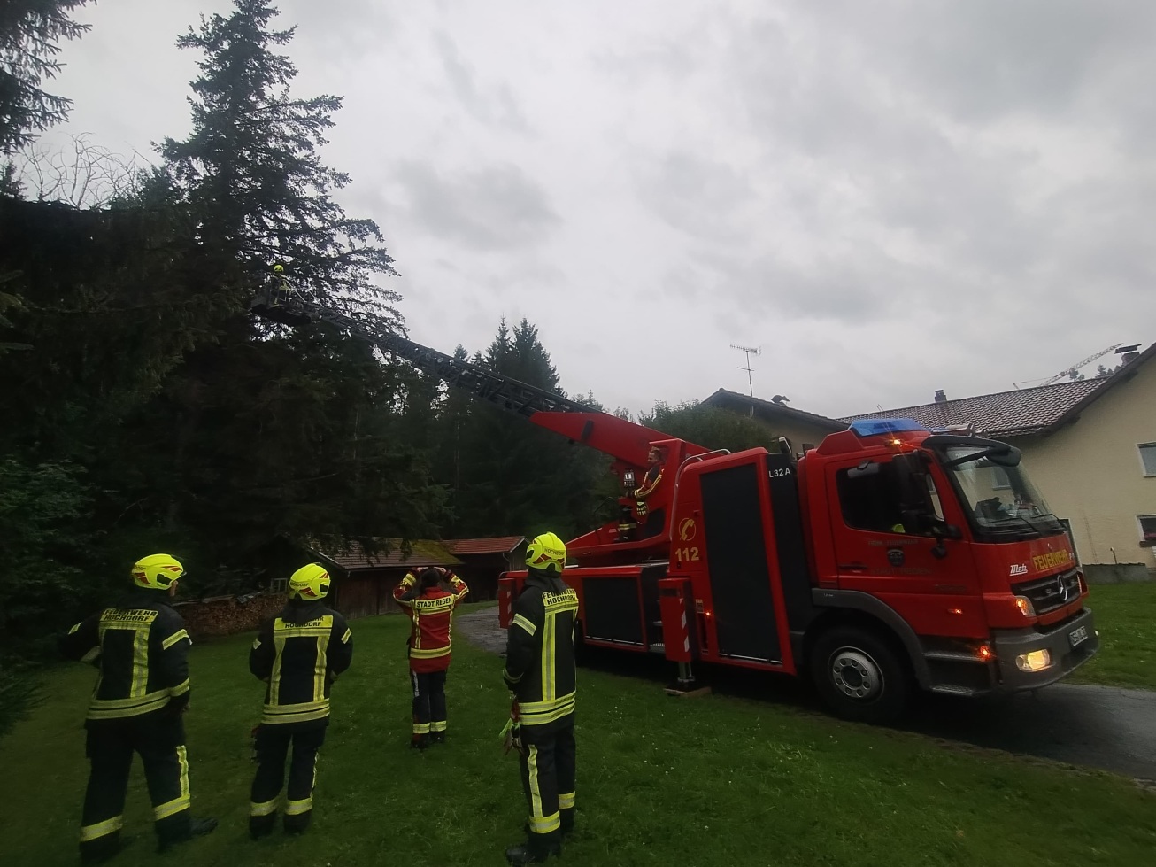 Hochbruck: Katze auf Baum hieß die Alarmmeldung am Dienstag für die Feuerwehr. Aufmerksame Anwohner entdeckten im Bereich der Regener Straße in Hochbruck am Dienstagnachmittag eine Katze auf einem Baum. Sie verständigten telefonisch den Feuerwehrkommandanten. Nach einer ersten Erkundung wurde festgestellt, dass sogar zwei Katzen auf einem Baum waren. Eine junge kleine Katze, sowie eine größere waren aus bisher nicht bekannten Gründen auf den Baum geklettert und trauten sich vermutlich nicht mehr herunter. Nachdem die beiden Katzen auf eine Höhe von ca. 6 Meter am Baum waren, wurde am Nachmittag mittels vierteiliger Steckleiter versucht, die beiden zu retten. Dieses Unterfangen war aber aussichtslos, da beim Aufstellen der Leiter, beide Katzen in Richtung Baumwipfel flüchteten. Aus diesem Grund versuchten die Hochdorfer Feuerwehrmänner gar nicht mehr mit der dreiteiligen Schiebeleiter eine Tierrettung durchzuführen. Der Einsatz wurde vorerst abgebrochen. Nachdem die beiden Katzen auch bis zum frühen Abend nicht selbstständig herunterkamen, wurde die Drehleiter der Feuerwehr Regen hinzugezogen. Nachdem die Regener Kameraden ihre Drehleiter in Stellung brachten, konnte die junge Katze vom Baum gerettet werden. Die größere Katze flüchtete immer weiter nach oben und wegen der einbrechenden Dunkelheit mussten die Feuerwehrler den Einsatz schließlich abbrechen, mit der Hoffnung, dass die Katze alleine den Weg nach unten findet. Die FFw Hochdorf bedankt sich bei den aufmerksamen und besorgten Anwohnern sowie der Feuerwehr Regen für die großartige und nicht selbstverständliche schnelle Hilfe und Unterstützung.